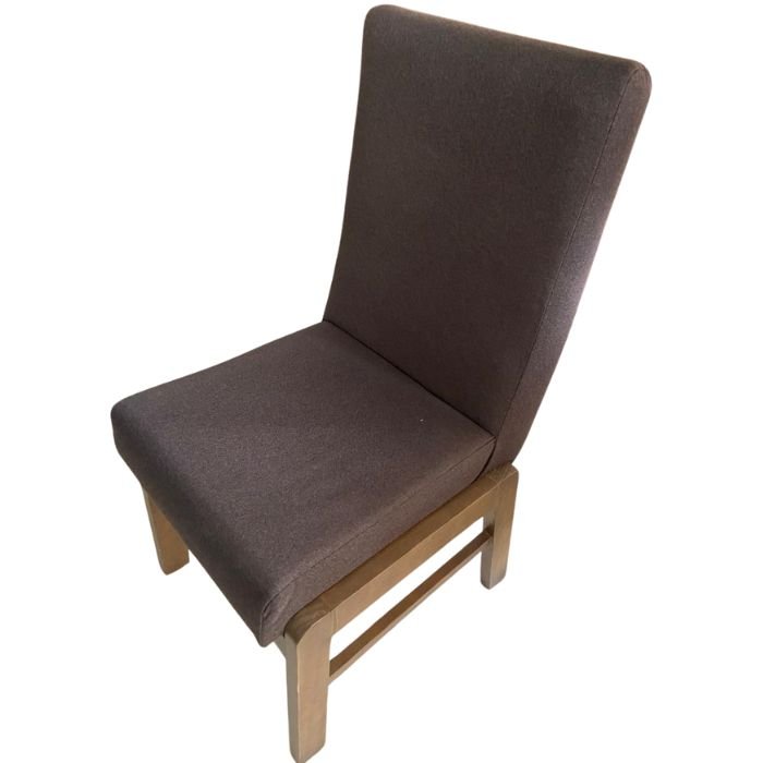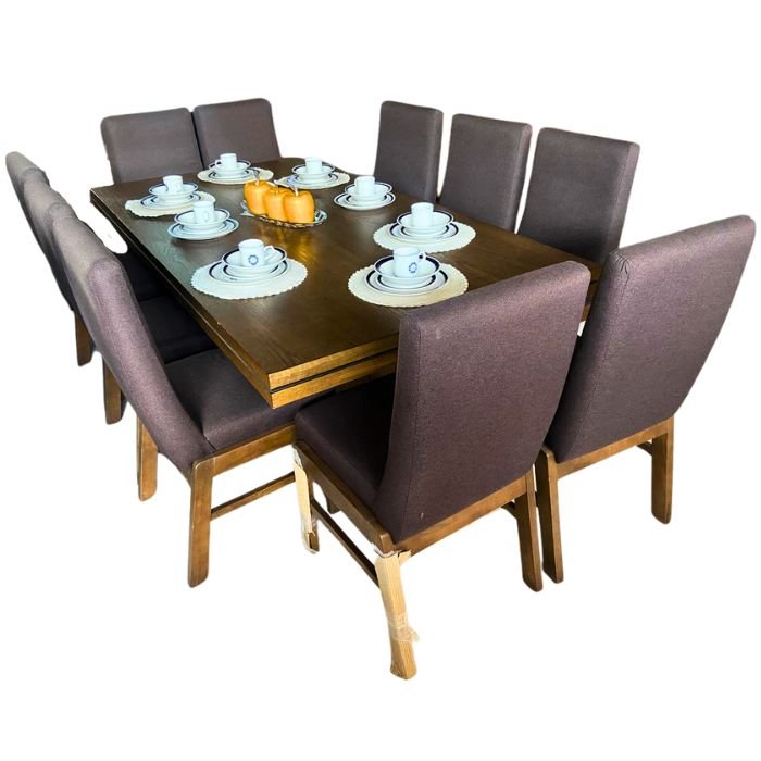 Las 10 sillas Enjoy Plus en tono chocolate complementan perfectamente el conjunto, tapizadas en tela tipo lino que aporta suavidad al tacto y comodidad prolongada. Su estructura de madera sólida garantiza durabilidad y soporte firme, mientras que su diseño de respaldo alto y cojín acolchonado proporciona una experiencia de uso confortable para todos los comensales.