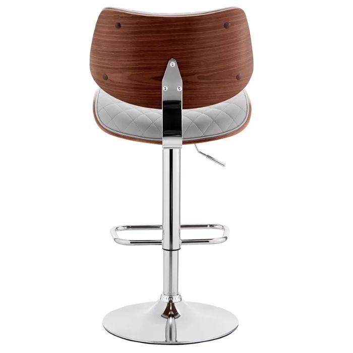 Su pistón de gas permite ajustar la altura fácilmente, adaptándose a diferentes superficies como desayunadores o islas de cocina. La base metálica negra mate, además de ser resistente, añade un toque industrial moderno. El asiento giratorio proporciona mayor movilidad y practicidad, ideal para ambientes dinámicos y familiares.