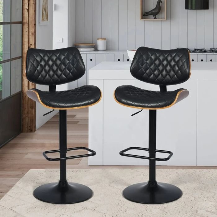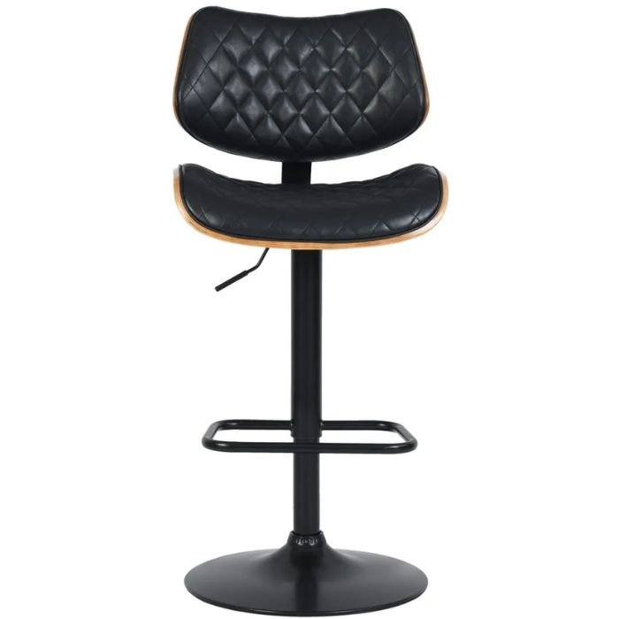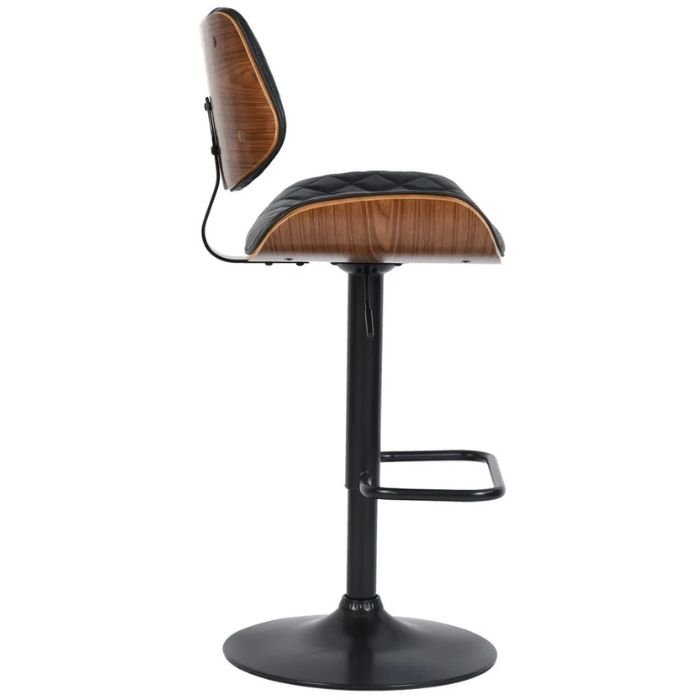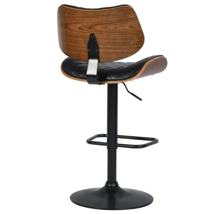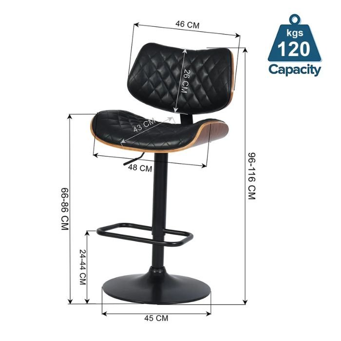 Cuenta con pistón de gas para ajustar la altura fácilmente, adaptándose a distintas superficies como islas de cocina o barras. Su base metálica negra garantiza estabilidad y durabilidad, mientras que el asiento giratorio facilita el movimiento, ideal para ambientes sociales y dinámicos.