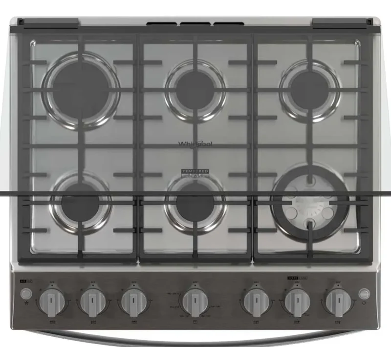 Estufa Whirlpool WFR7250S 30″ con tecnología Air Fry integrada que permite cocinar con hasta 75% menos aceite manteniendo el sabor y textura ideales. Combina la versatilidad de una estufa convencional con la innovación de freír con aire caliente, ofreciendo múltiples métodos de cocción en un solo electrodoméstico de alta eficiencia energética y diseño contemporáneo.