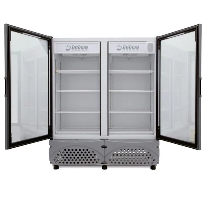 El Imbera VR‑35 es un refresquero comercial de alto rendimiento diseñado para exhibir y conservar bebidas de forma eficiente y segura. Tiene una capacidad de 1,072.1 L, ideal para establecimientos con alta demanda de productos fríos.