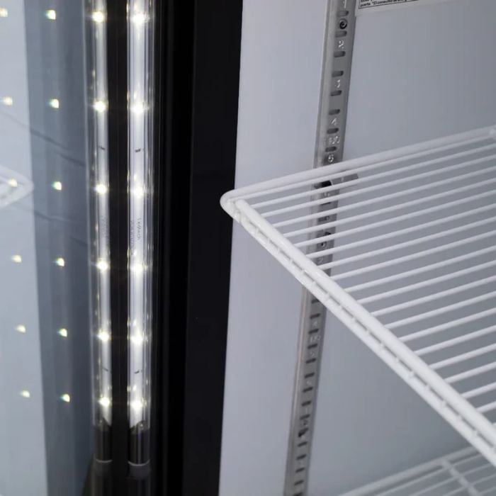 Sus dos puertas de doble panel de vidrio templado, rellenas con gas Argón y tratamiento Low‑E, reducen la pérdida de frío por radiación y mejoran la eficiencia energética. Incorpora control digital inteligente con modo ECO, condensador de bajo mantenimiento y ventiladores electrónicos, optimizando el consumo y prolongando la vida útil del compresor.
