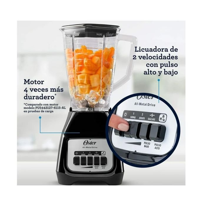 La Licuadora Oster Kaliman Negra BLSTKAP-BPB es una opción práctica y duradera para tu cocina diaria. Con un motor de 400 watts y un diseño compacto, es ideal para preparar desde batidos hasta salsas y sopas calientes.