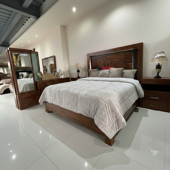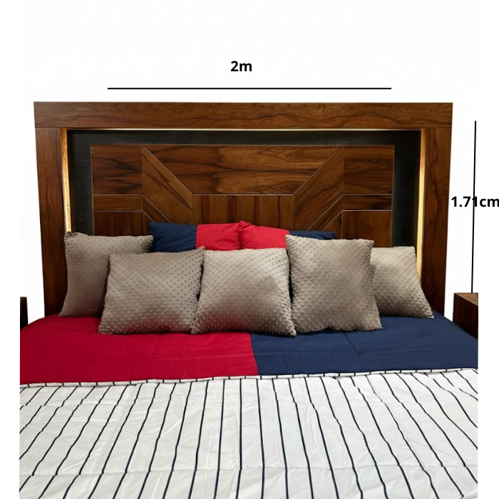 Cabecera amplia de madera, con detalles que realzan la veta natural