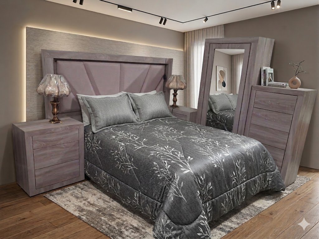 Diseño contemporáneo con líneas limpias y detalles geométricos en la cabecera