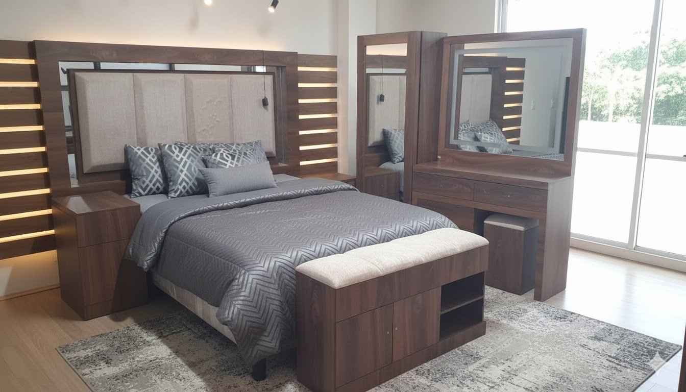REMODELA TU HABITACIÓN CON MUEBLES DE EXCELENTE CALIDAD LA RECAMARA VELAZQUEZ VALERIA KS KENIA NOGAL CANTELA CREAM  ES UNA OPCION IDEAL PARA TU HABITACIÓN