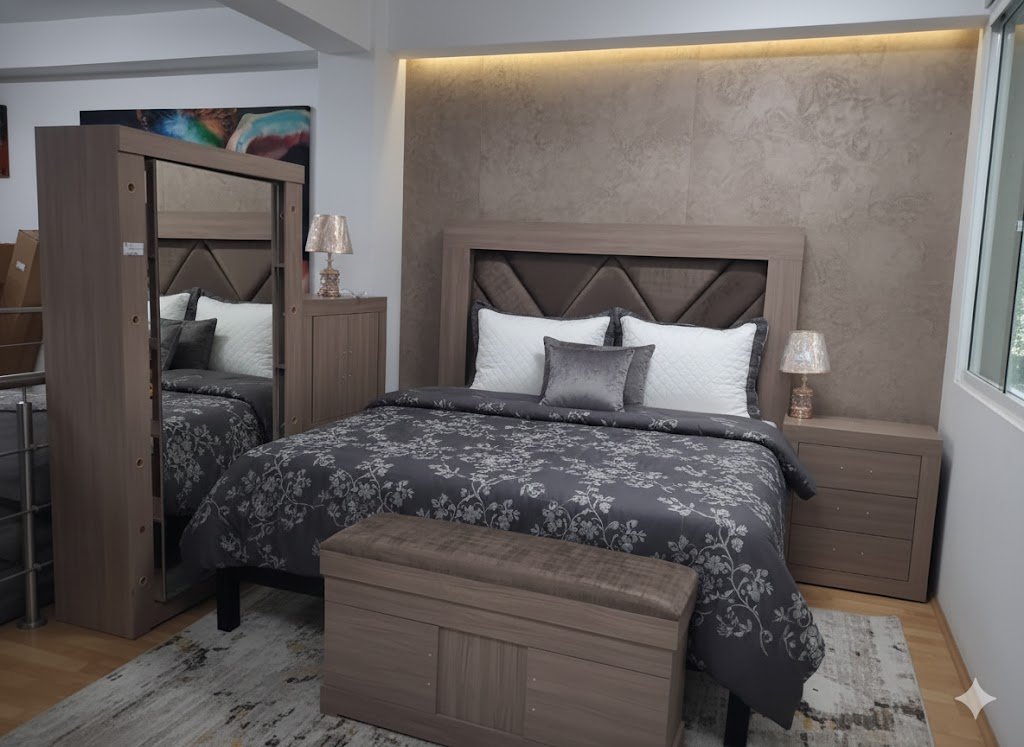 REMODELA TU HABITACION CON LA RECAMARA VELAZQUEZ VALERIA KS KENIA NOGAL CANTELA CREAM UNA EXCELENTE OPCION,