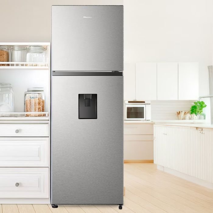 El Refrigerador Hisense RT11N6WCX ofrece una capacidad total de 311 litros, distribuidos en un diseño Top Mount de dos puertas. Su sistema de enfriamiento No Frost asegura una distribución uniforme del aire frío, manteniendo los alimentos frescos por más tiempo. Además, incorpora un despachador de agua externo, que permite acceder fácilmente a agua fría sin necesidad de abrir la puerta.