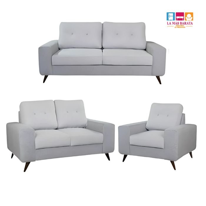 La Sala New Concept Kolibri 3-2-1 Enroy Plus Silver es un conjunto de muebles que combina diseño contemporáneo y comodidad, ideal para realzar la estética de tu sala de estar. Este set incluye un sofá de tres plazas, un loveseat de dos plazas y un sillón individual, proporcionando un espacio completo para compartir momentos con familiares y amigos.