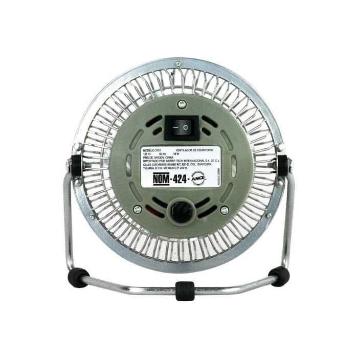 Ventilador de Mesa Mytek 3131 de 4″ con estructura metálica, inclinación ajustable, operación sencilla y diseño compacto ideal para espacios reducidos.